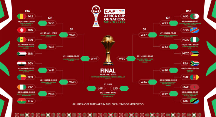 À Agadir, le Grand Stade de la capitale du Souss abritera la confrontation entre l’Égypte et le Bénin. Les huitièmes de finale se poursuivront au Grand Stade de Marrakech, qui sera le théâtre de la rencontre Côte d’Ivoire-Burkina Faso, tandis que la capitale, Rabat, accueillera trois autres matchs.