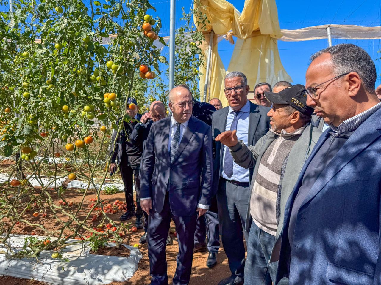 Le ministre s’est rendu dans plusieurs exploitations agricoles de fruits et légumes, principalement des exploitations de tomates, dans les communes d’Inchaden et Belfaa, où il a constaté la nature et l’ampleur des dégâts.